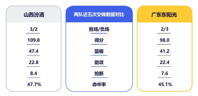 山西队几天前用外援尼克斯取代盖伊,球队在组织串联和攻坚方面得到补强。上轮首秀,尼克斯便高效砍下20分。迪亚洛和奈特场均得分皆达两位数,前者在上回合拿到全场最高的23分,后者近几场比赛在得分、助攻方面均有不俗发挥。此外,贾明儒、张宁和法耶等亦可为球队提供火力支持。目前,山西队场均得分和投篮命中率均排在第七、三分命中率第六。此役,广东队务必要提升防守针对性和压迫力,以免对手通过传配拉开空间,实现内外开花。山西队罚球出手数和命中数均进入前四,广东队在肉搏碰撞之下还应注意控制犯规。