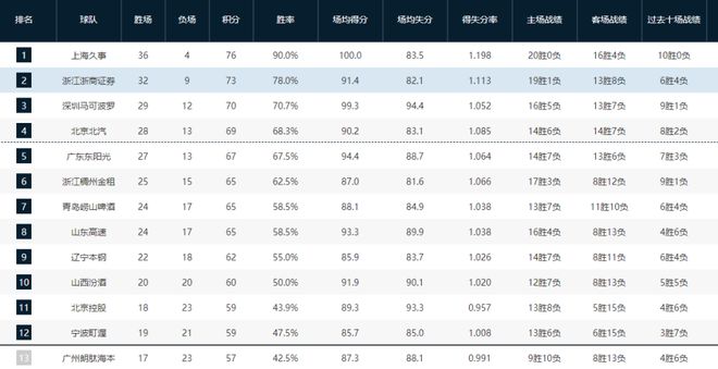 CBA最新排名!北京争四占据主动权,山东锁定第八,北控出线太难
