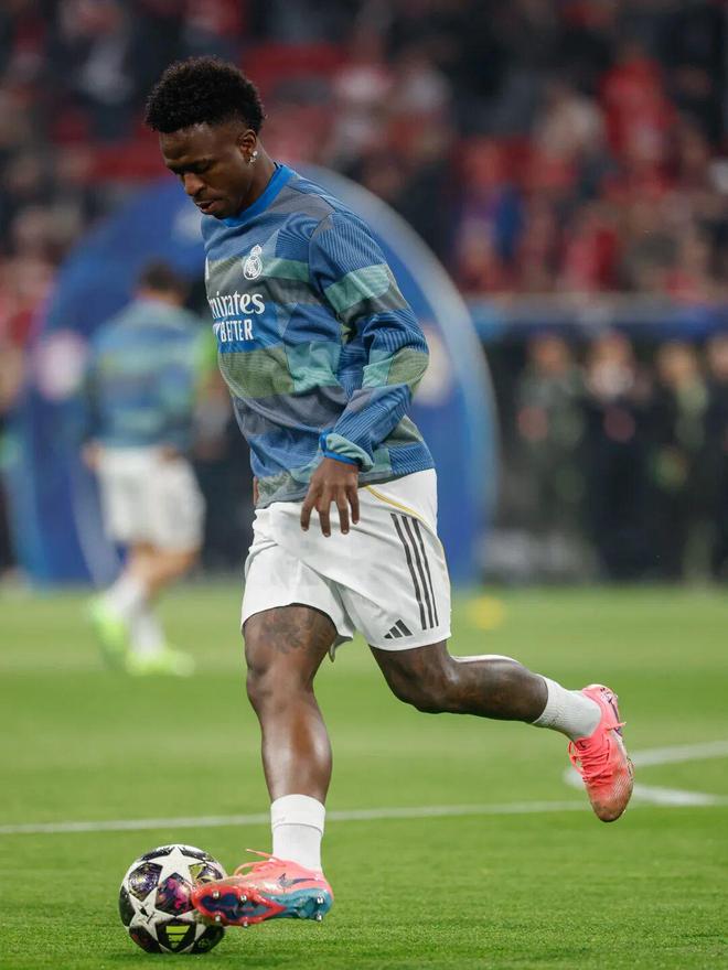 41' 维尼修斯反击突入禁区,射门击中横梁弹出